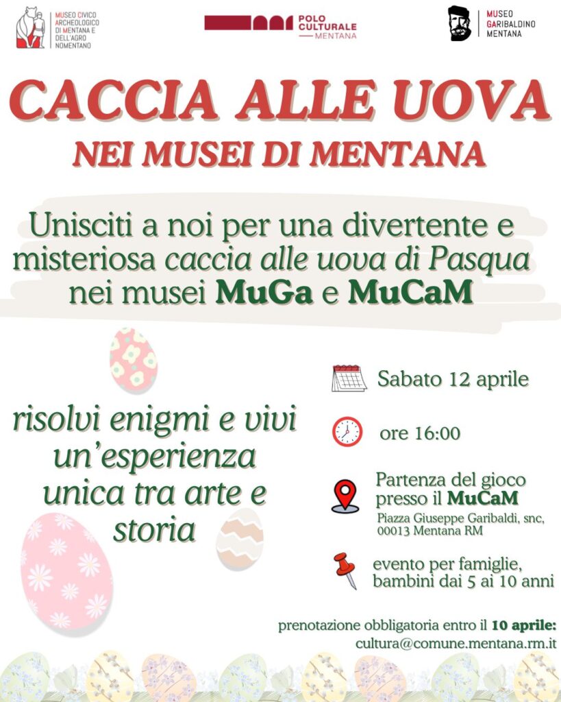 Percorso giocato all’interno del MuCaM – museo civico archeologico e del MuGa- museo garibaldino, alla ricerca delle uova di Pasqua nascoste tra i reperti dell’antica Nomentum le giubbe rosse garibaldine