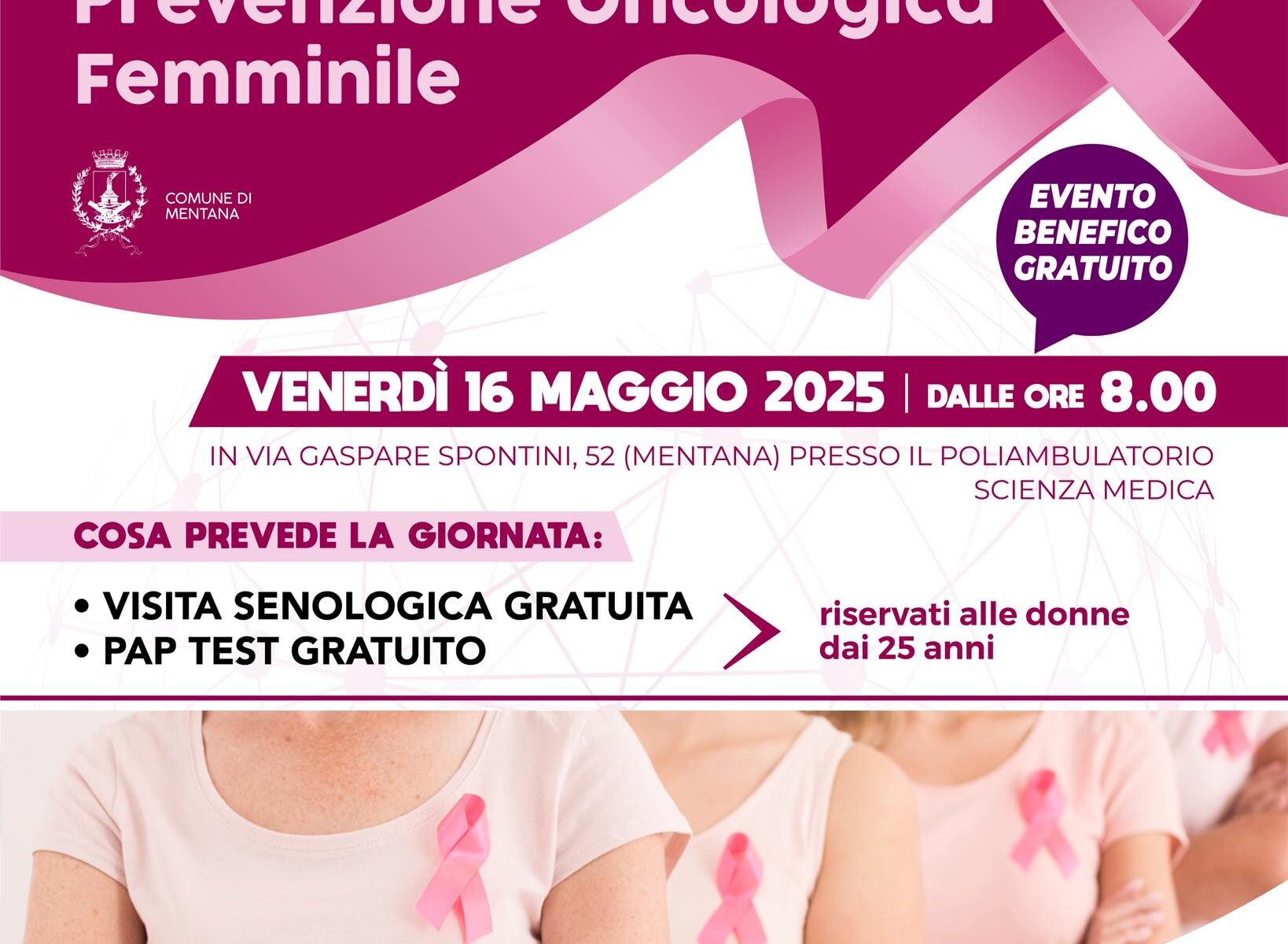 Venerdì 16 maggio 2025 – Mentana Una giornata gratuita dedicata alla salute femminile e alla prevenzione dei tumori ginecologici, promossa con il patrocinio del Comune di Mentana. Pap test e visita senologica saranno offerti, su prenotazione, alle donne a partire dai 25 anni d’età. L’iniziativa si terrà dalle ore 8.00 alle 17.00, in via Gaspare … Leggi tutto Prevenzione Oncologica Femminile: Open Day