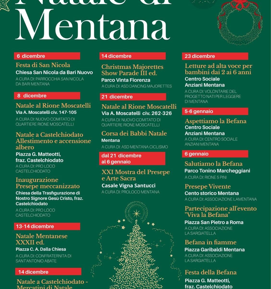 La magia del Natale torna a Mentana! Un mese intero di appuntamenti, luci e tradizioni che animeranno la città. Dalle feste di quartiere alle iniziative culturali, dai mercatini agli spettacoli per famiglie, quest’anno il Natale sarà veramente ina festa a Mentana.